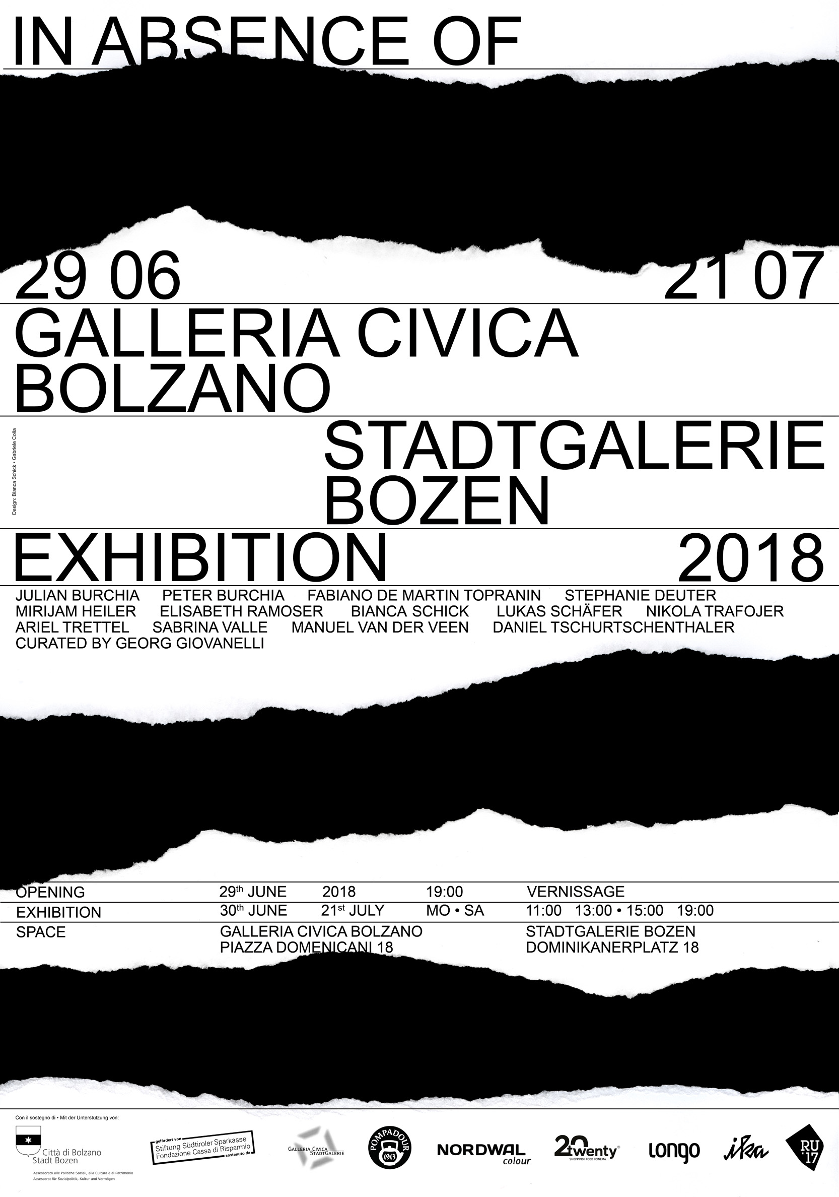 Inaugurazione: venerdì 29/06/2018 ore 19:00; Orari di apertura (30/06 - 21/07/2018): lunedì-sabato: ore 11:00-13:00 / 15:00-19:00; Domenica: chiuso