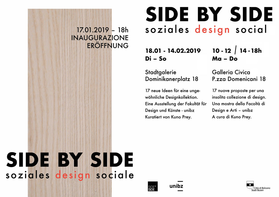 SIDE BY SIDE era un progetto didattico del SE18 alla Facoltà di Design e Arti – unibz, seguito dai docenti Kuno Prey, Luca Martorano e Hans Leo Höger.