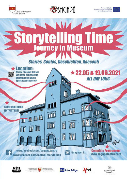 “Storytelling Time – Journey in Museum” è un’iniziativa del Comune di Bolzano, che gode quest’anno anche del sostegno del FEST – Federation for European Storytelling attraverso il fondo europeo Creative Europe e dell’Ufficio Cultura della Provincia di Bolzano.