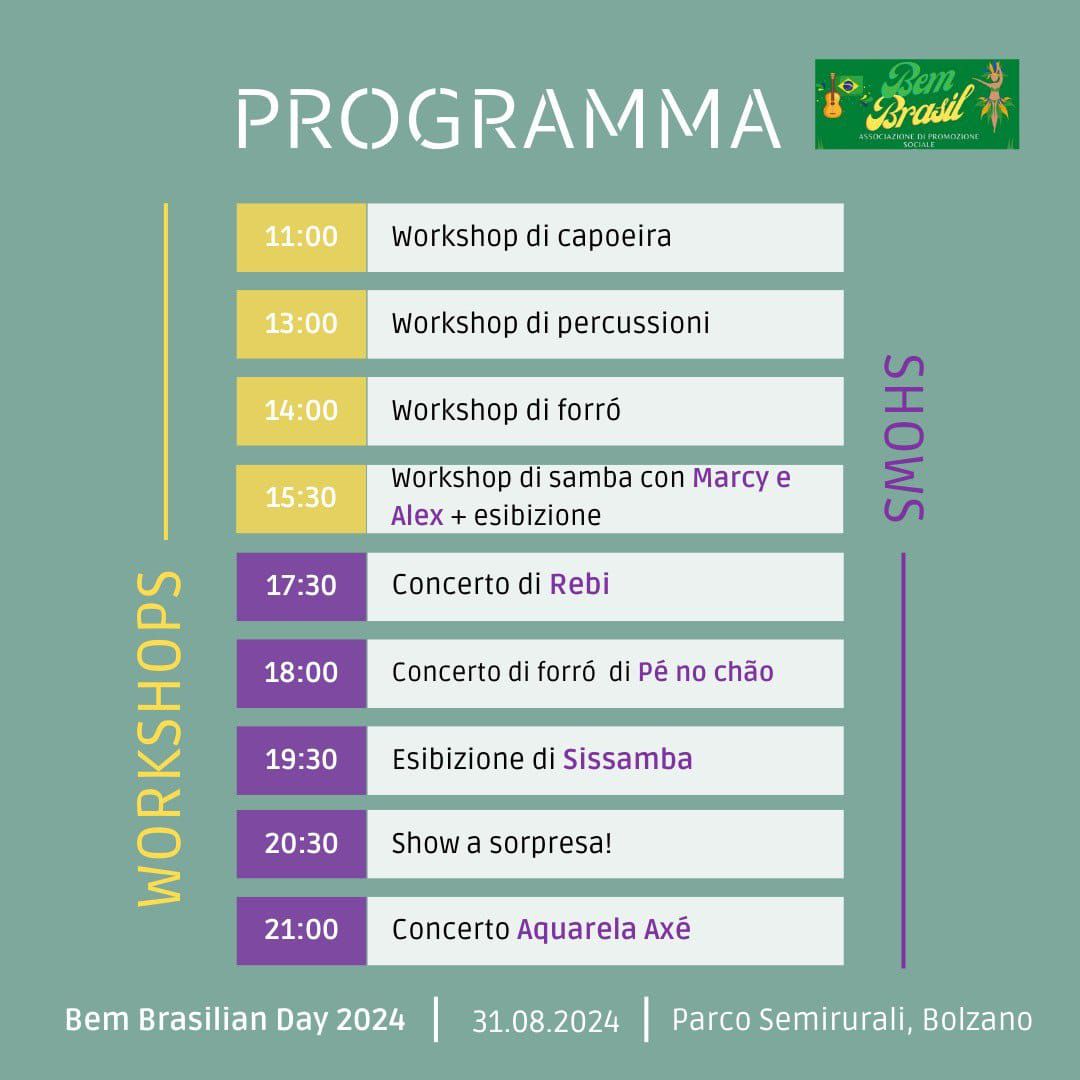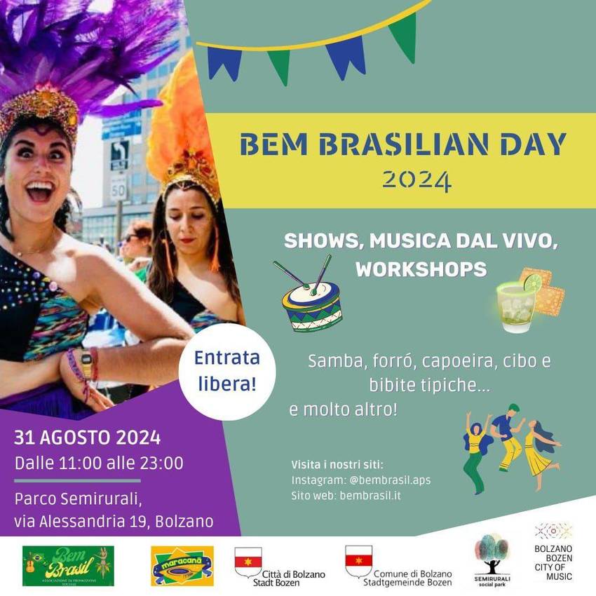 Una giornata organizzata dall’associazione Bem Brasil APS aperta al pubblico, ideata per promuovere i diversi aspetti della cultura brasiliana a Bolzano, in Alto Adige e nei dintorni