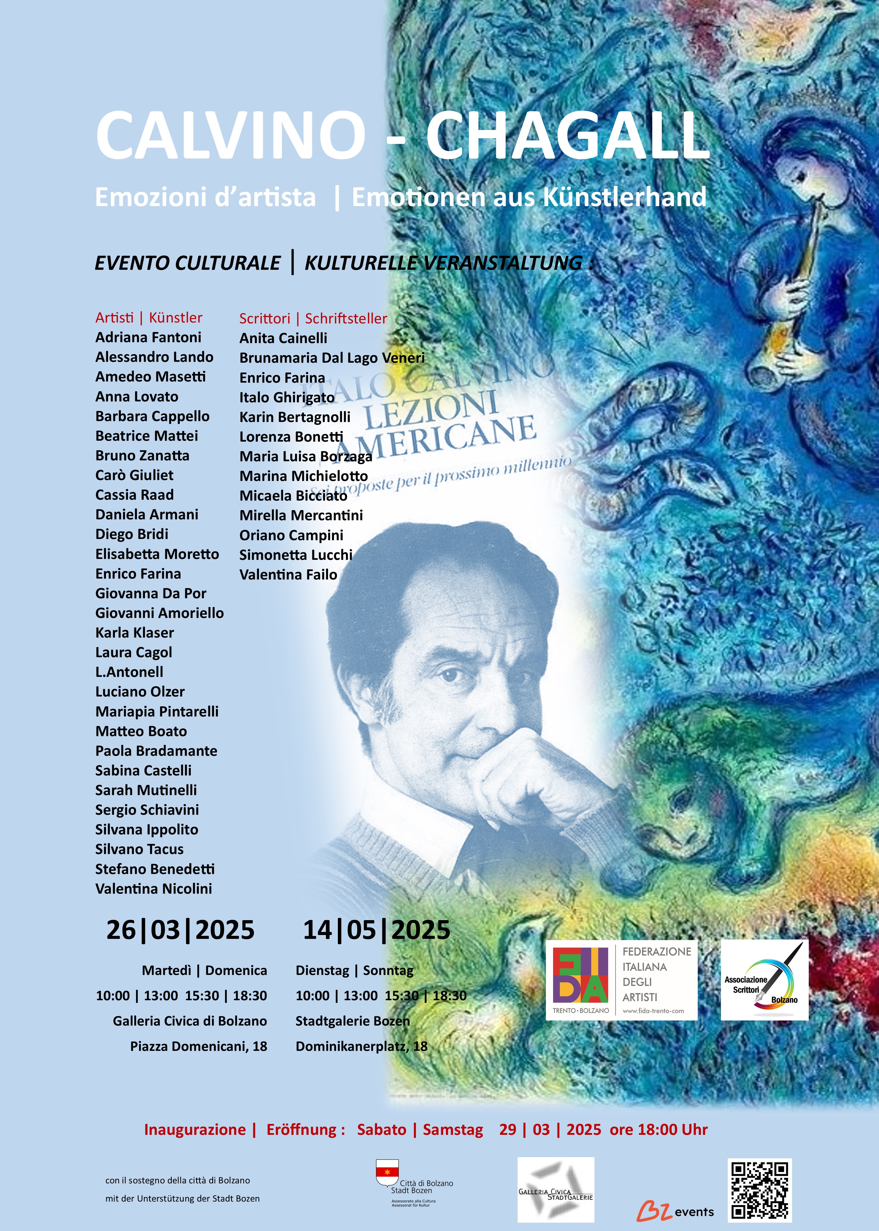 Un evento culturale di ampio respiro, che espone opere di ventinove artisti della Regione Trentino Alto Adige e scritti dedicati dalle penne dei tredici scrittori della Associazione di Bolzano. Opere e testi sono una libera e personale interpretazione, nonché espressione che si riferisce, come ispira a questi due memorabili personaggi quali baluardi di letteratura e arte.