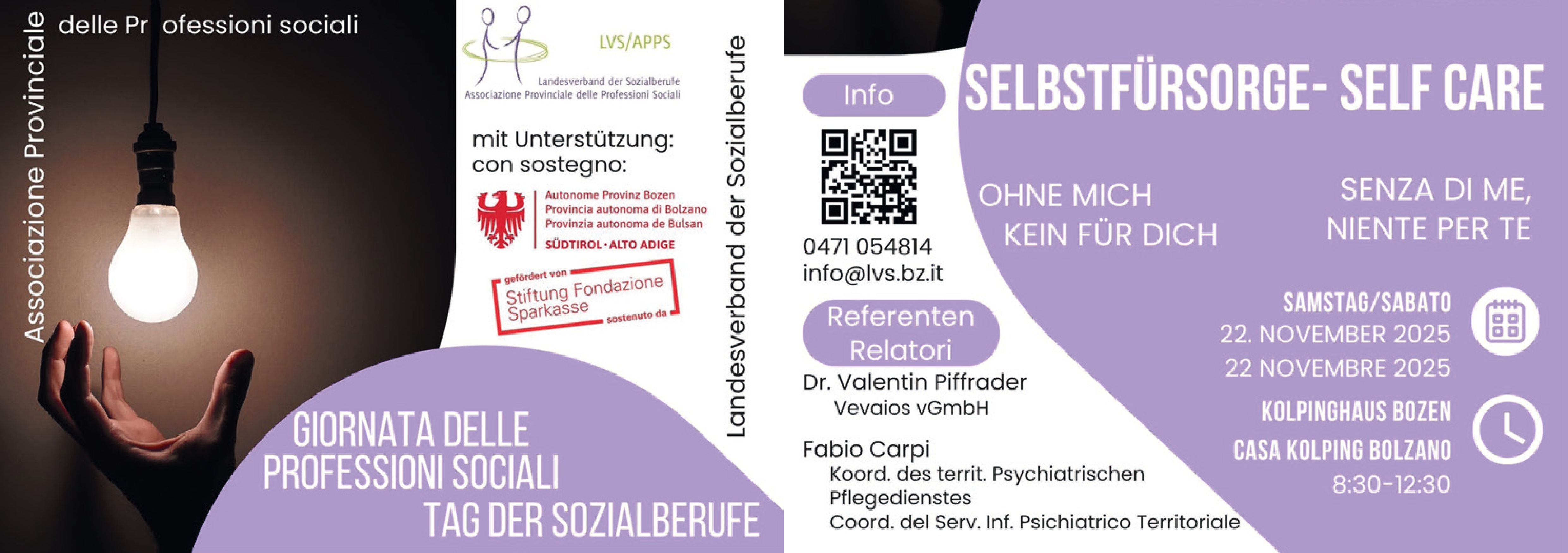 Con il sotegno di: Associazione Provinciale delle professioni sociali, Stiftung Fondazione Sparkasse, Provincia Autonoma di Bolzano