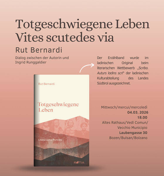 „Totgeschwiegene Leben“ è stato pubblicato originariamente nel 2020 in lingua ladina con il titolo „Vites scutedes via. Essays letereres“ e ha ricevuto un riconoscimento nell’ambito del concorso letterario „Scribo. Auturs ladins scrí“ promosso dalla Cultura ladina della Provincia di Bolzano.